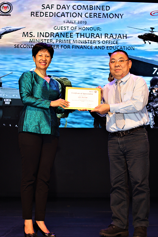 Mr Chai represented eLC to receive the Certificate of Appreciation from Guest of Honour, Minister in the Prime Minister's Office and Second Minister for Finance and Education Ms Indranee Rajah.
