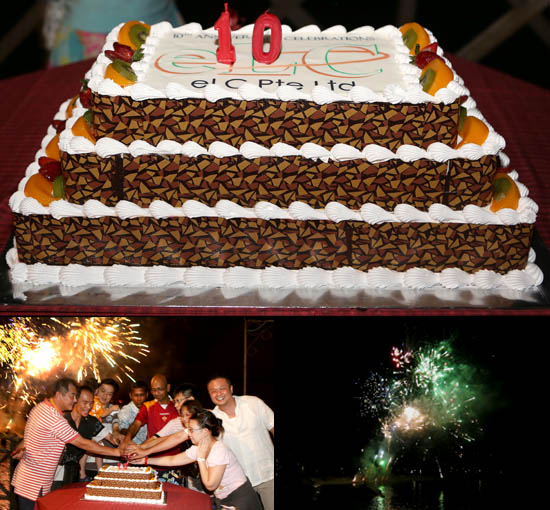 One of the highlights of the Party was the cutting of our 3-tiered birthday cake at exactly 10:10:10pm and the sky lighted up with a tremendous outburst of fireworks to mark the party of a decennium.